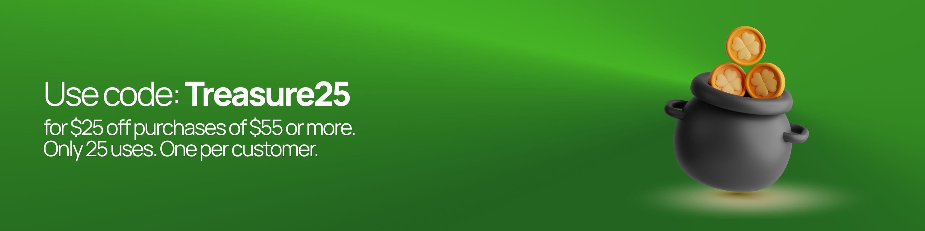 25 total coupons available. The discount code can only be applied ONCE per customer.