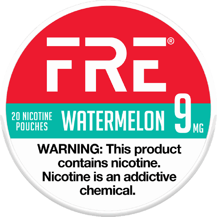 FRE Watermelon 9MG contains nicotine and features a watermelon flavour in a nicotine pouch format. The product is tobacco-free and contains synthetic nicotine. Each pouch provides 9mg nicotine. The Watermelon flavor is also available in 3mg, 6mg, 12mg, and 15mg—to suit different preferences. Each can includes 20 pouches and can be purchased individually or in multipacks of 5, 10, 25, or 50 from Nicokick.