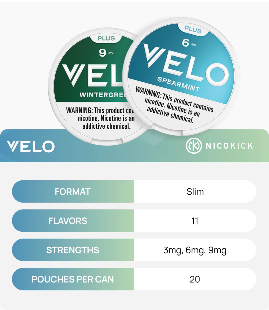 VELO Plus is the newest line of nicotine pouches from VELO, created for adult nicotine users seeking a convenient, tobacco-free option. Each pouch offers a consistently smooth experience with 3mg, 6mg, or 9mg of premium synthetic nicotine.