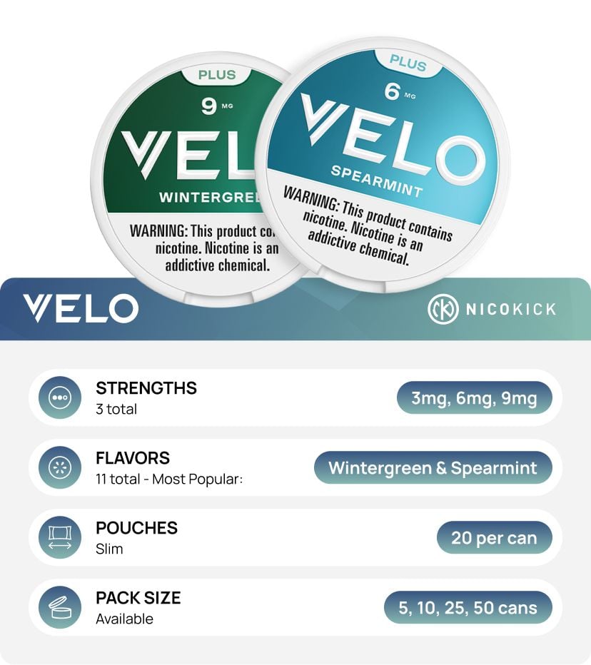 While classic VELO pouches use traditional plant-derived nicotine, VELO Plus introduces a premium synthetic version along with enhanced flavors, strengths, and usability. Compare their key features at a glance here: